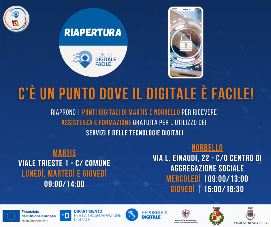 Riaprono i punti digitali di Martis e Norbello per ricevere assistenza e formazione gratuita nell’utilizzo dei servizi e delle tecnologie digitali.